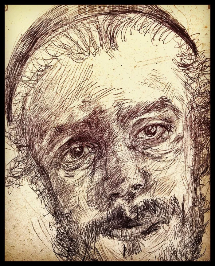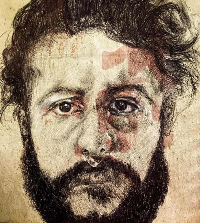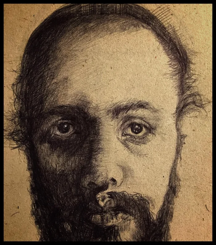 3. Hamoon Alipour, Self-Portrait, Pen on Paper, 20×20, 2020.