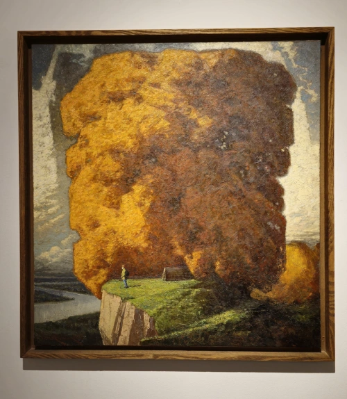 شکل شگفت‌انگیز درختان در نقاشی‌ها به مرور زمان دچار تغییراتی شده است. گاهی شبیه به توده‌‌ی ابری یک دست و یک رنگ با سطوح پهن و گسترده‌، گاهی شبیه به صخره‌ای سترگ که از دل زمین سر برآورده و گاهی به شکل یک فرم مدرنیته که اگر آن را از اطراف نقاشی برش دهیم و از طبیعت جدا کنیم به یک شکل بی تعریف و انتزاعی می‌رسیم و هنرمند، هوشمندانه در مرز تمامی این‌ تعاریف پرسه می‌زند و در هیچ کدام به تنهایی جا خوش نمی‌کند. در فضای تنگ اطراف درختان، گاه با انسان‌ها و حیوانات نیز مواجه هستیم. در انداز‌ه‌هایی بسیار کوچکتر، که باعث ایجاد تضاد بیشتری در ذهن بیننده می‌شود. انداز‌ه‌ی این عناصر در نهایت گستردگی درختان را تشدید می‌کند.(تصویر ۲) عظمت‌ این توده‌‌ها شبیه به یک امر قدسی درک می‌شوند که پا را از طبیعت و واقعیت فراتر گذاشته و به امری والا تبدیل شده‌اند. مخاطب در مقابل این آثار به امری فراتر از طبیعت دست می‌یا‌بد، گویی این درختان سفری از طبیعت به درون روح نقاش سپری‌ کرده‌اند و در برابر دیدگان تجلی یافته‌اند. در بسیاری از موارد تنه‌ی درختان مشاهده نمی‌شود و شکل درختان تا سطح زیرین، یکپارچگی خود را حفظ می‌کند و تغییری در آن ایجاد نمی‌شود.